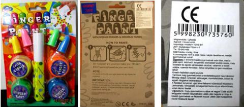 Finger Paint feliratú papír alapon átlátszó műanyag csomagolásban négy tégely, négy ujj eszköz tartalmú ujjfesték szett