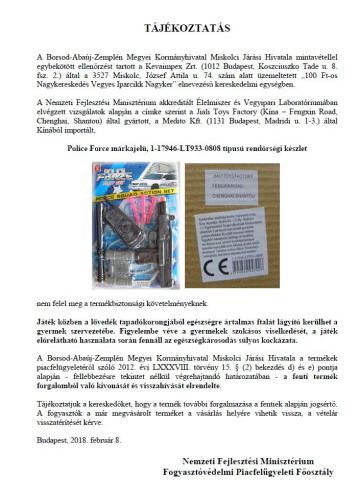 Játék közben a lövedék tapadókorongjából egészségre ártalmas ftalát lágyító kerülhet a gyermek szervezetébe. Figyelembe véve a gyermekek szokásos viselkedését, a játék előrelátható használata során fennáll az egészségkárosodás súlyos kockázata.