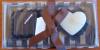Szív alakú fehércsokoládé és csokikocka bonbonhoz hasonló gyertya, barna bonbonpapírt formázó tartóban.