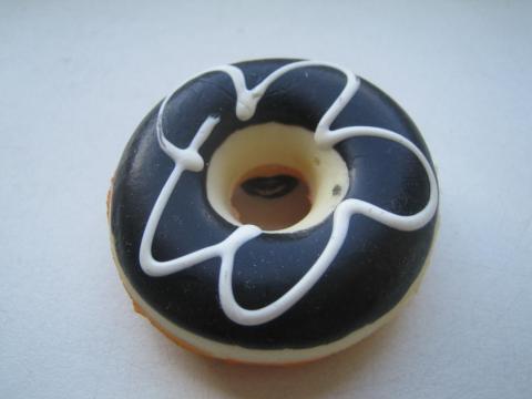 Habszivacsból készült, csokis fánkot formázó hűtőmágnes, tetején tejszínhab díszítéssel.