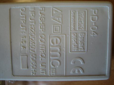 A lámpatest főbb alkatrészei: "2.5A 250V~, CE, B" feliratokkal ellátott, kétpólusú csatlakozódugó; "PD-04, Intertek Deutschland Bauart geprüft, CE, freccsenő víz elleni védettség jele, F-jel, a II. érintésvédelmi osztály jele, emc ITS, FLASHER CONTROL UNIT, INPUT:220/240V 50/60Hz, OUTPUT: 1.5 A, PRESS" + angol nyelvű funkció elnevezésekkel jelölt villogtató egység (belső nyomtatott áramköri lap: HS HF104K); "250V~2.5A" feliratokkal ellátott csatlakozóaljzat a további füzérek csatlakoztatásához; feliratok nélküli, egyeres, egyszeres szigetelésű összekötő vezetékek; feliratok nélküli, kéteres, egyszeres szigetelésű átmenő huzalozás és 1 m hosszú hálózati csatlakozóvezeték.
